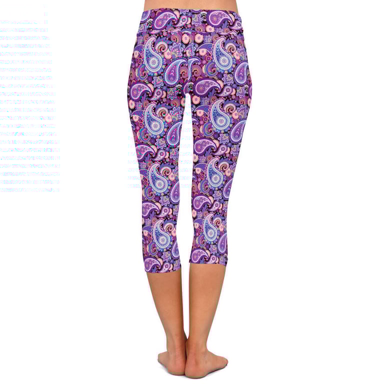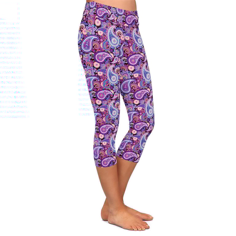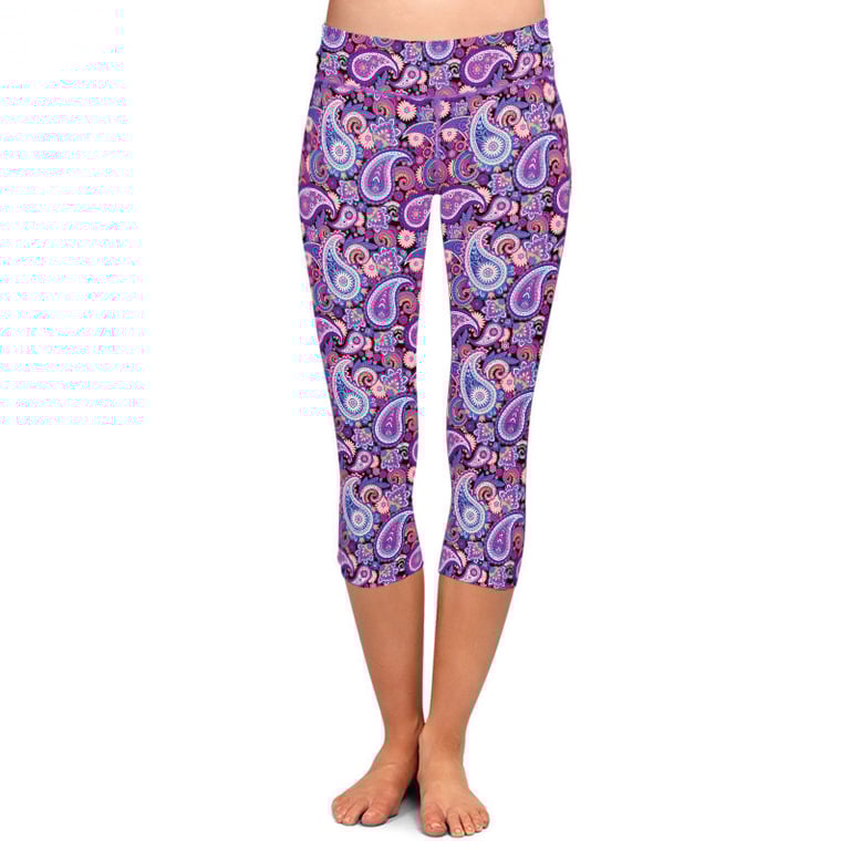 Women's leggings with an elastic waistband. 3/4 length legs. Colourful all-over print.