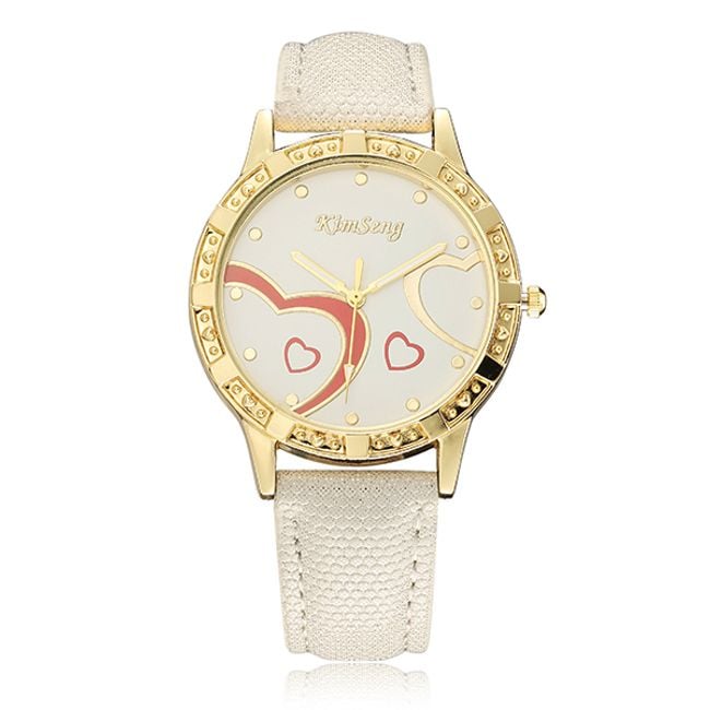 Elegant watches with a heart motif will delight girls and women with a sense of romance. The dial is in gold with embellishments as shown in the picture, and you can choose from several strap colours. These watches make an ideal gift for a friend or girlfriend.