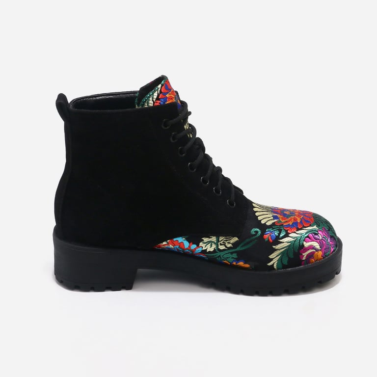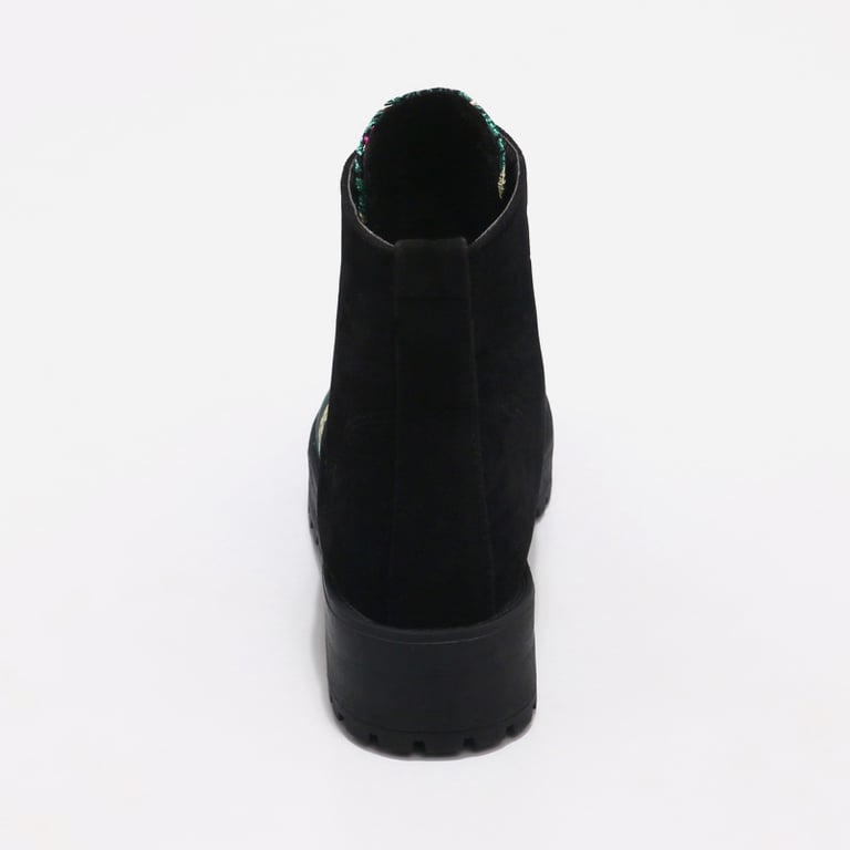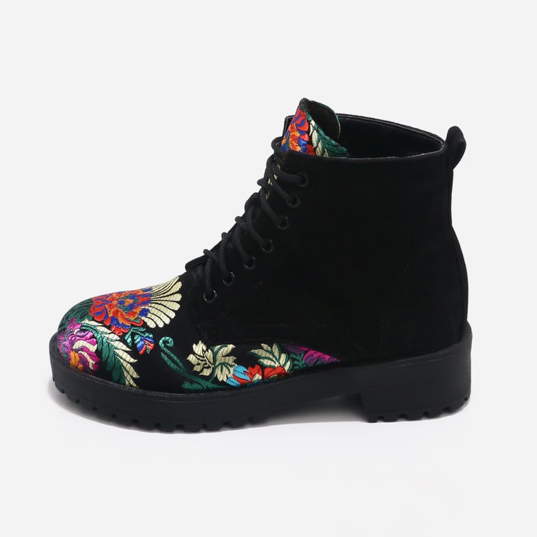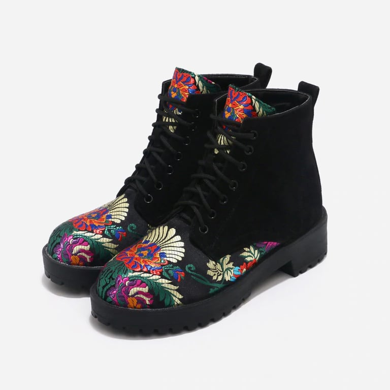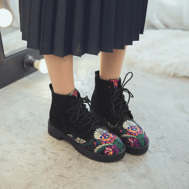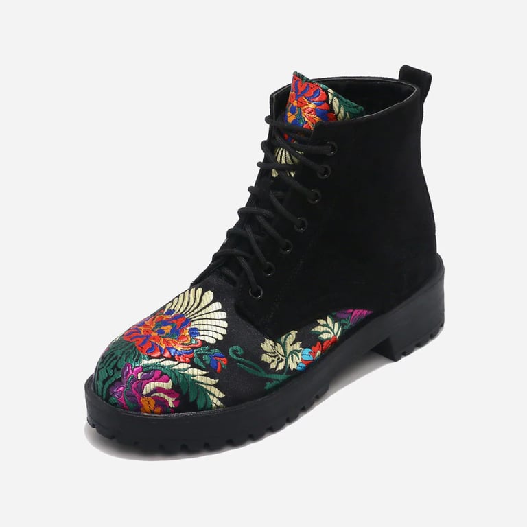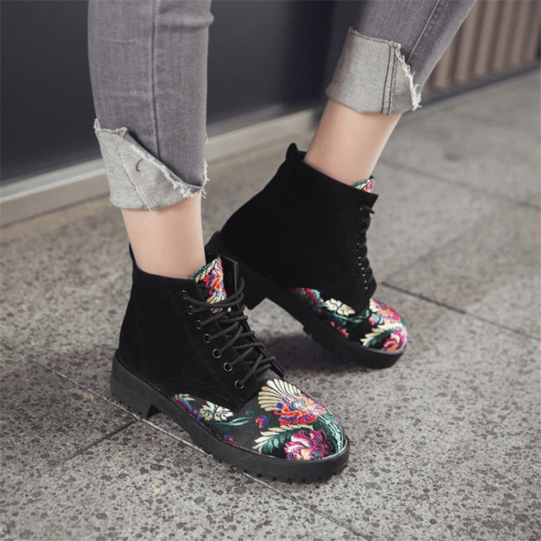 These ankle boots are very comfortable and do not pinch. The shoes have a beautiful colourful print.