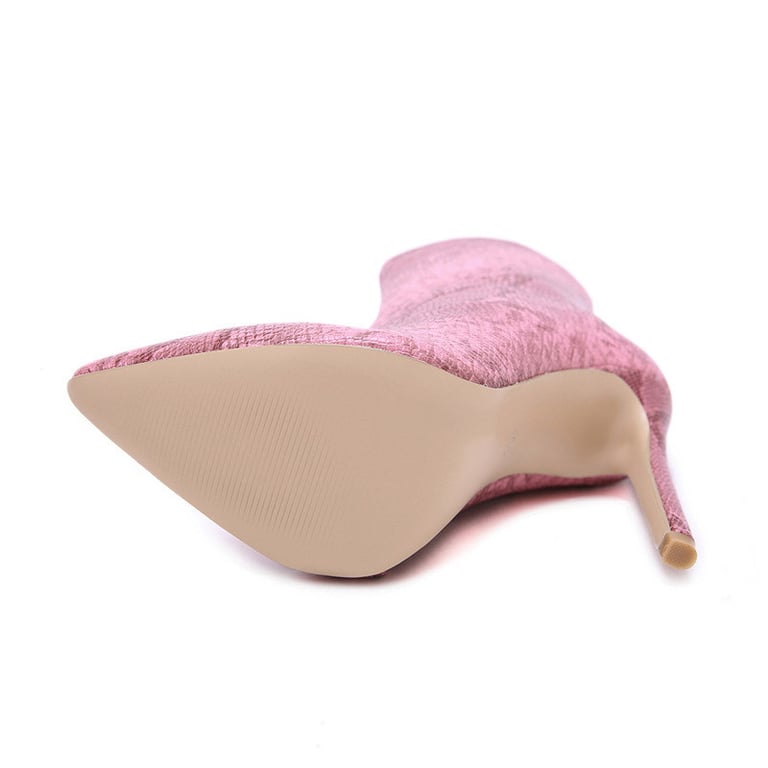 Women's ankle boots with a high stiletto heel. The boots feature an animal print and a zip fastening on the inner side. Available in two colours.
