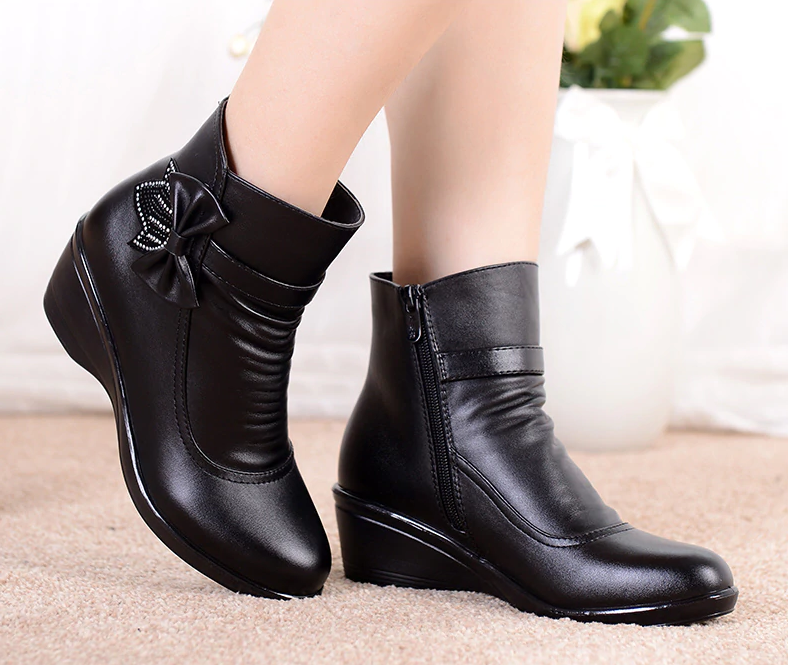 Ladies' ankle boots with a bow – 2 colours
