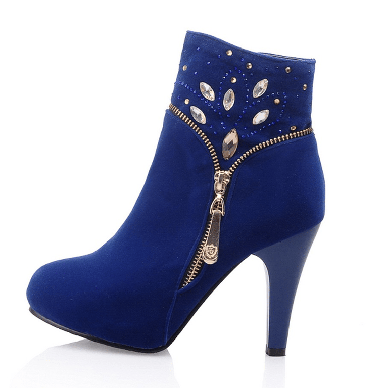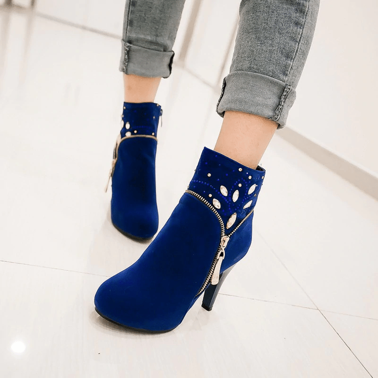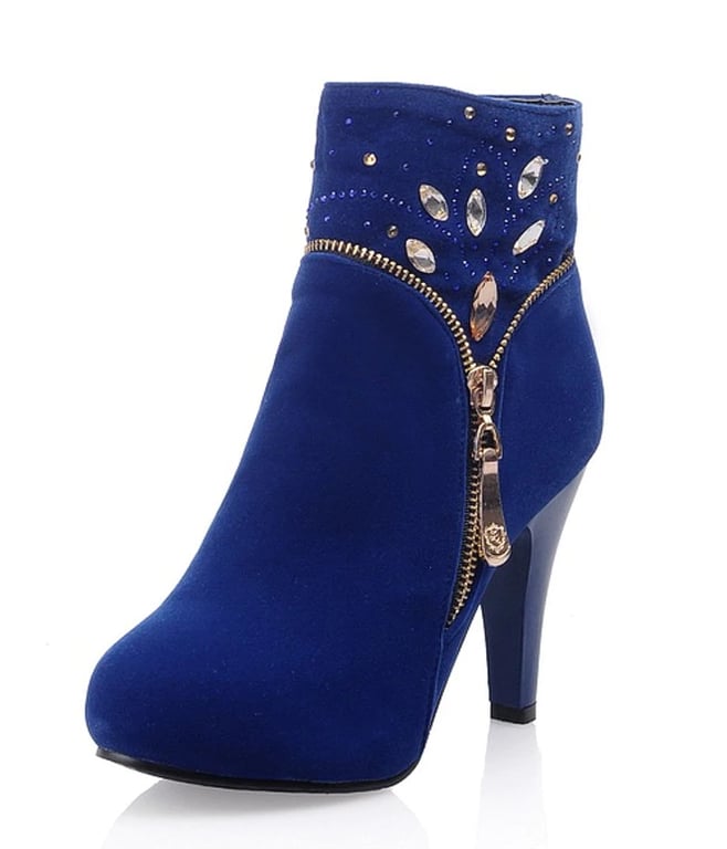 You will definitely love these ankle boots with rhinestones thanks to the high-quality material. The boots have a heel and a zip fastening.