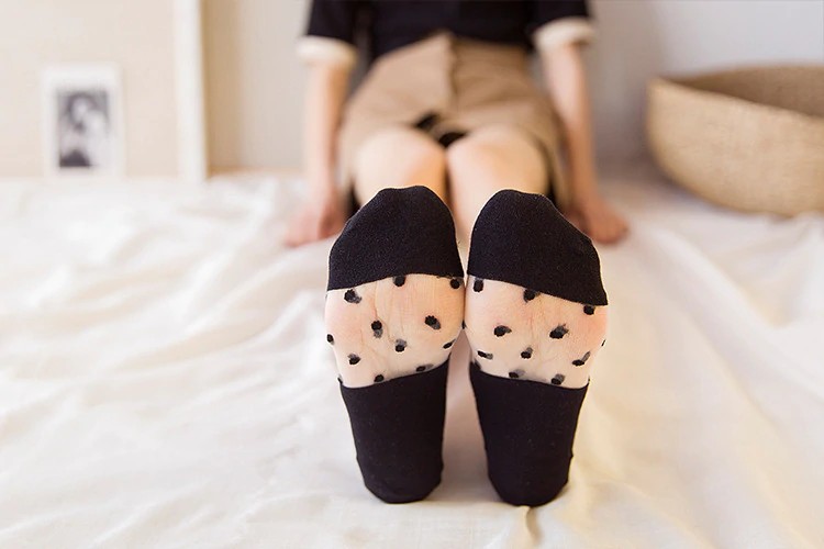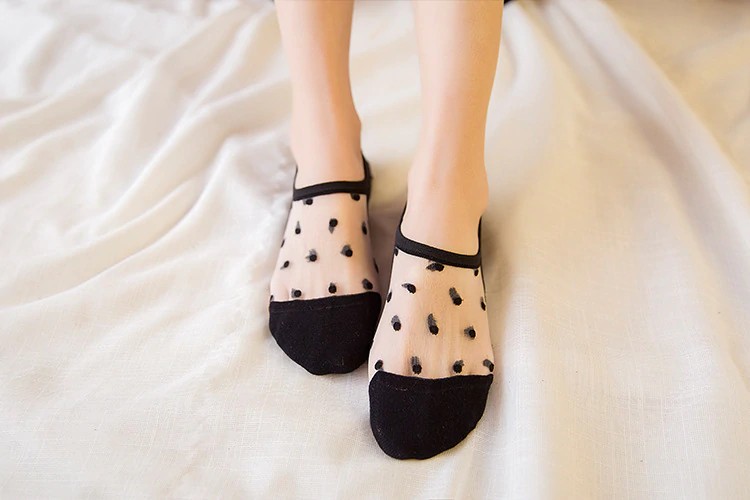TIP: The socks feature small dots on the instep, which will look elegant and provocative in pointed-toe heels.
