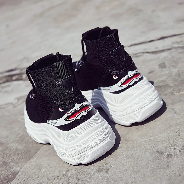 You will love these stylish Tiffany ankle sneakers with a shark print on the back.