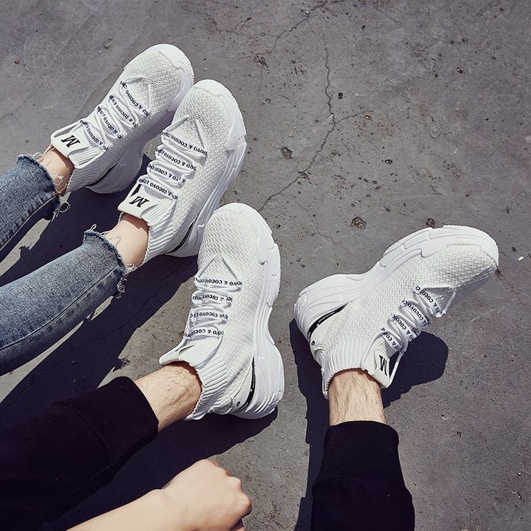 The trainers fasten with laces.
