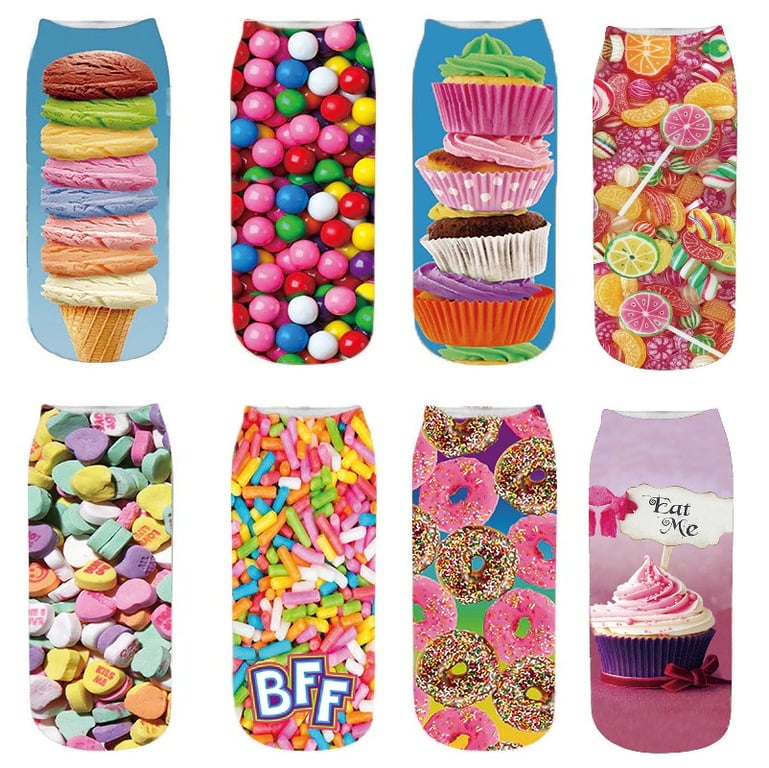 These ankle socks feature prints of various sweet temptations.