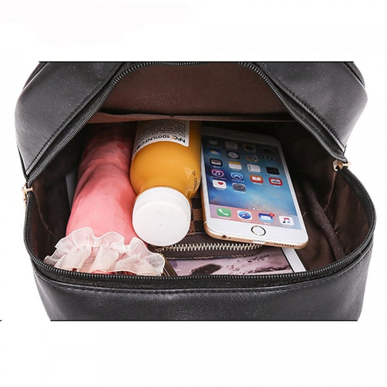 Women's faux leather backpack with adjustable straps. Decorative studs on the front. Large zip pocket. Small front zip pocket. Available in multiple colours.