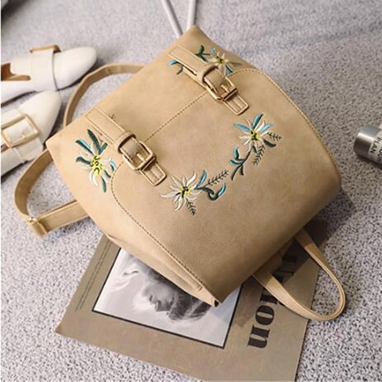 Women's backpack with floral patches.