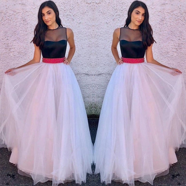 Women's long evening dress with a bow at the waist.