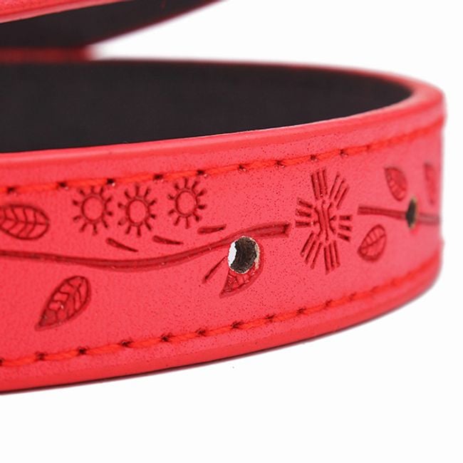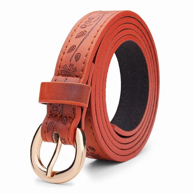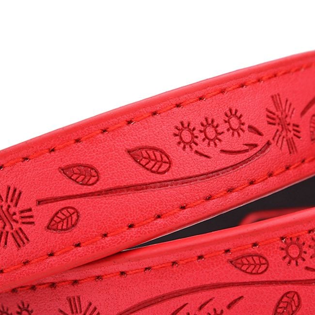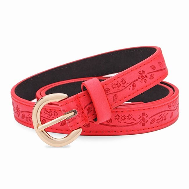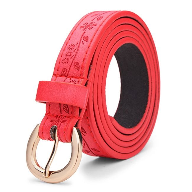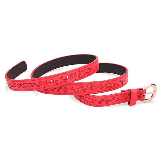 This fashion accessory will look great on any woman. The belt is quite long and wide. Its entire length is adorned with ornaments in the form of leaves and small flowers. There are seven attractive colours to choose from.