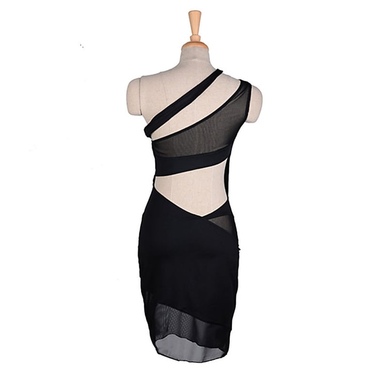 Women's Evening Dress with Sheer Stripes in Black