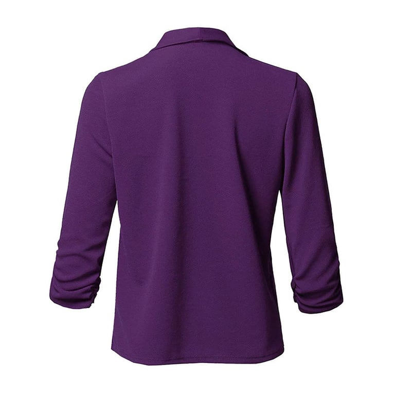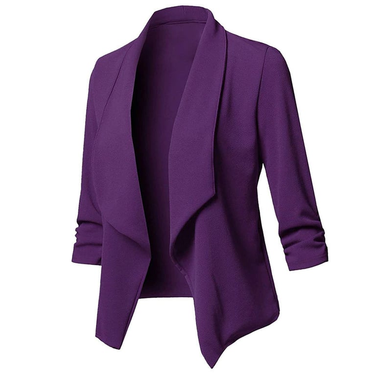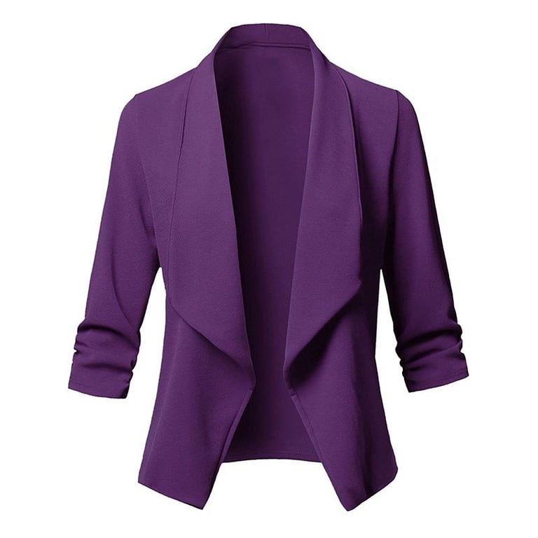 Women's blazer with 3/4 sleeves and wide lapels. The blazer is lightweight made from flowing fabric and has no fastening, unlined with a soft surface. Available in several colour options.