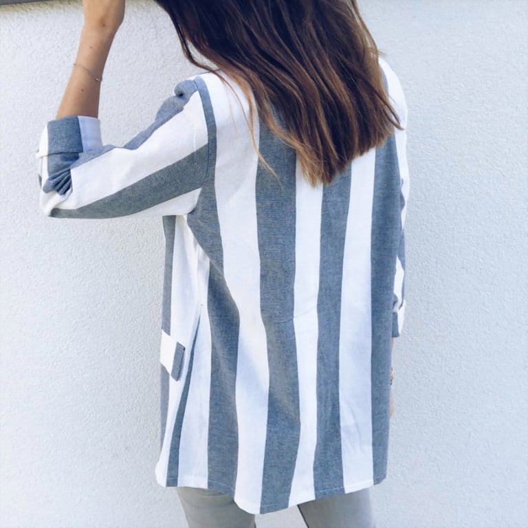 Women's lightweight blazer with lapels. Pattern with wide stripes. Loose oversized fit with side pockets. No fastening.