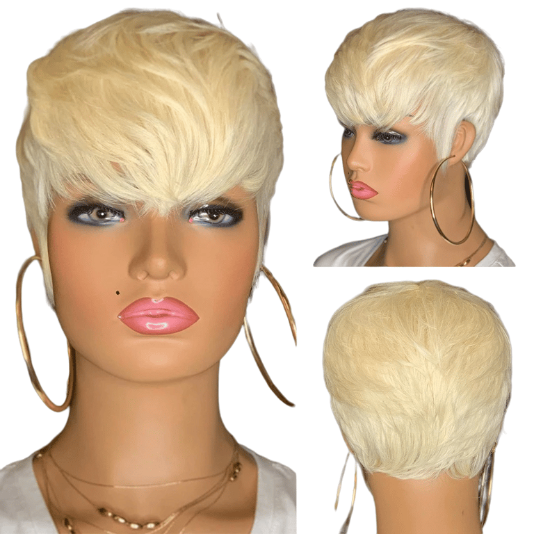 This comfortable and lightweight blonde wig is made from real hair. Suitable for everyday wear or social events. It can be washed with regular shampoo and styled using hairspray.