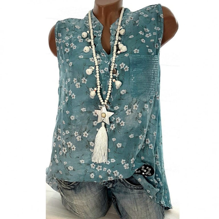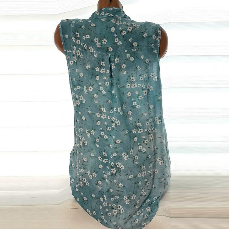 Women's sleeveless blouse. Loose comfortable fit with a collar neckline and button fastening. Colourful print with a floral motif. Available in two variants.