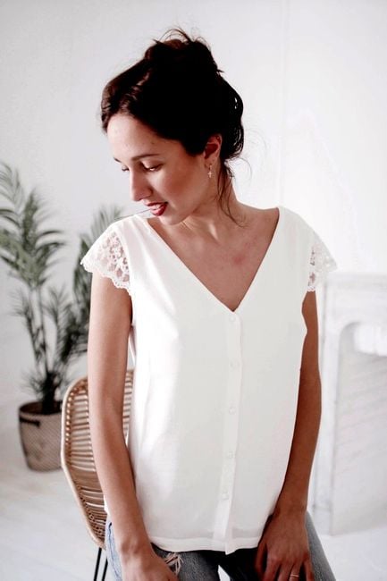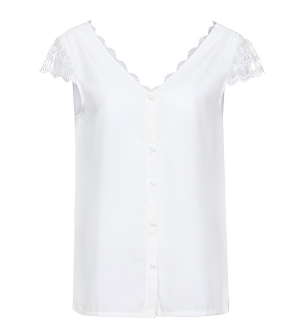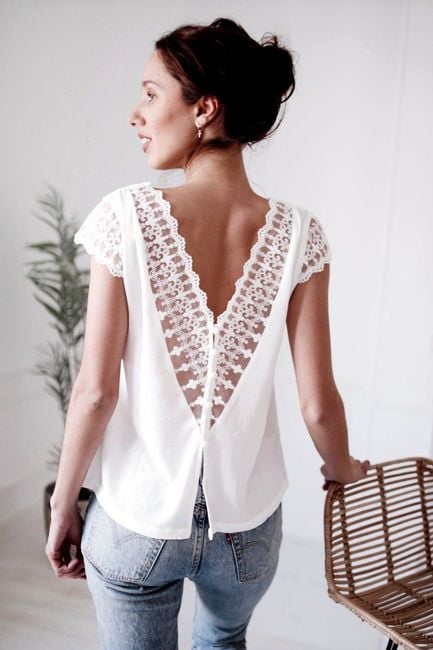 Elegant women's blouse with lace details in white.