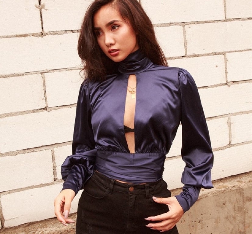 Women's blouse with a large neckline