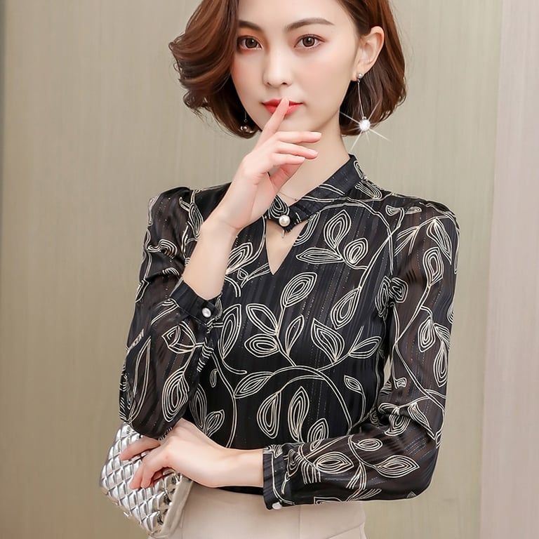 The blouse has a formal appearance and is suitable for interviews or meetings.