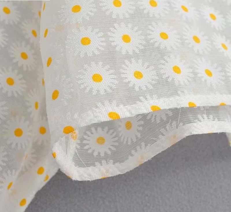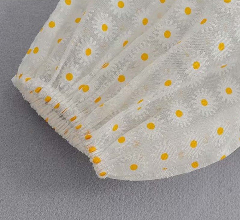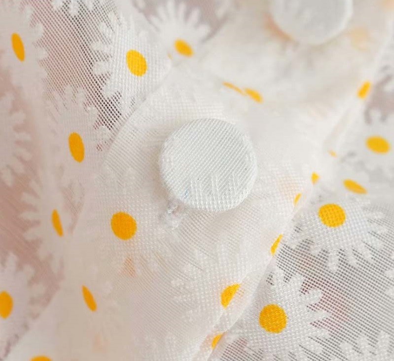 It is loose-fitting, has long sleeves, and is adorned with a collar.