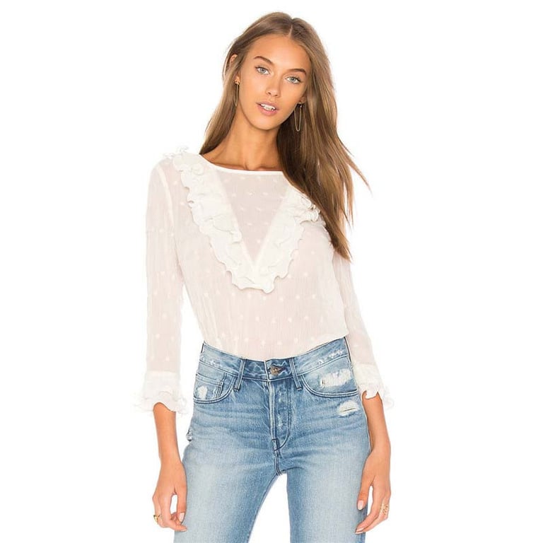 Stylish women's blouse with ruffles that you can take practically anywhere! It is advisable to wear a tank top underneath, as it may be slightly see-through due to its colour.
