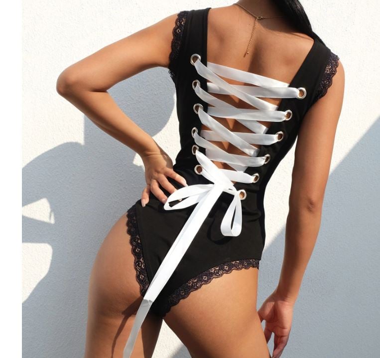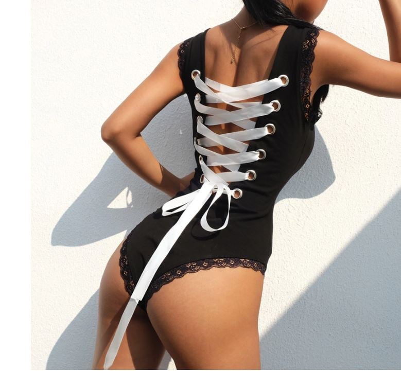 Ladies' bodysuit – sexy lace evening bodysuit for women with lacing at the back.