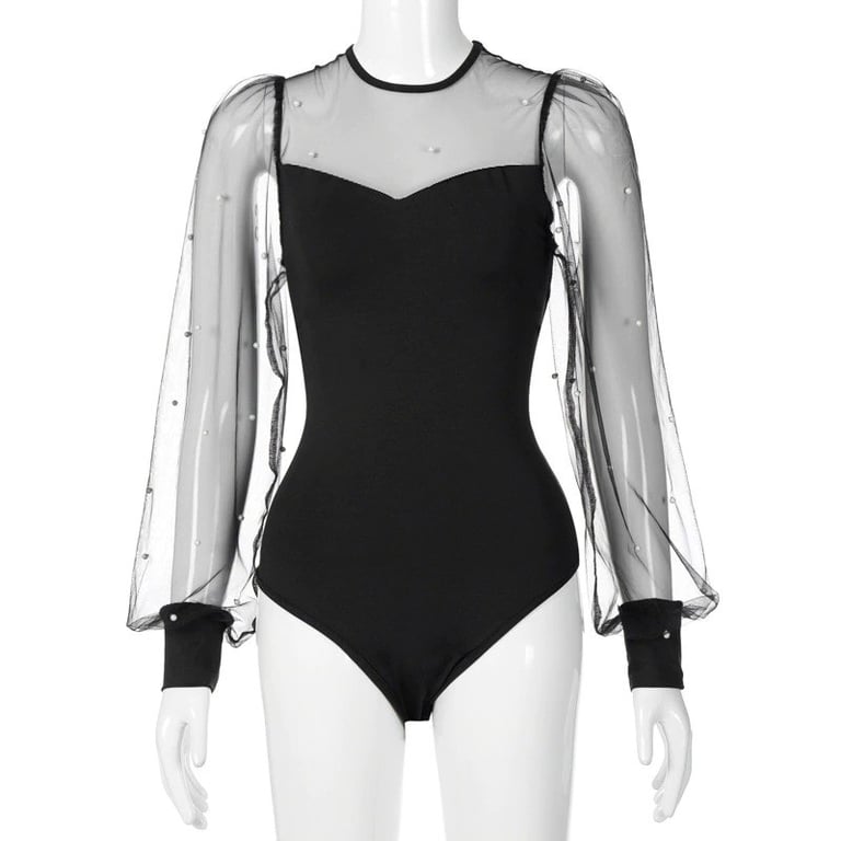 Women's bodysuit with sheer sleeves