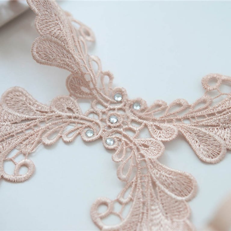 The lace straps form an X.