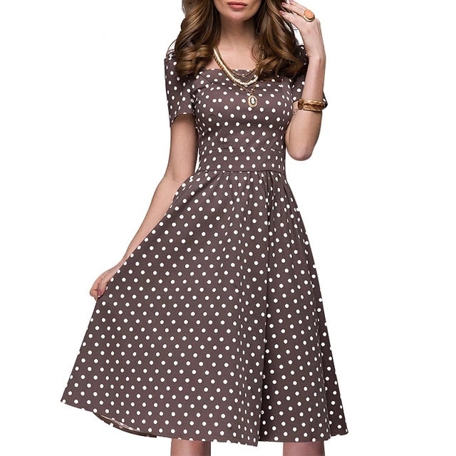 • Tags: Women's dress, retro dress, brown dress, polka dot dress