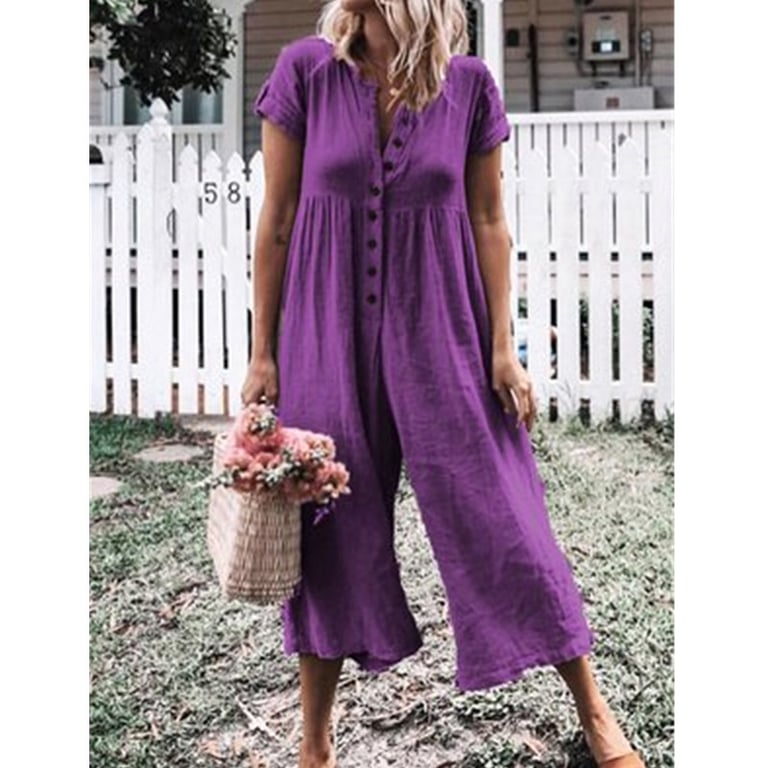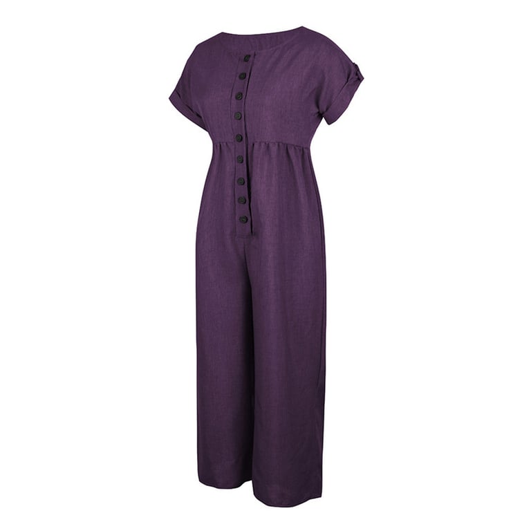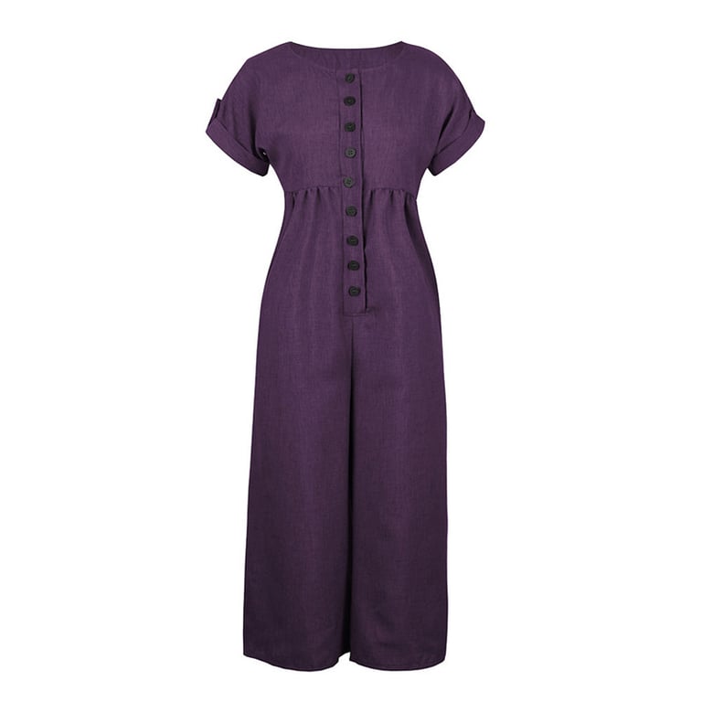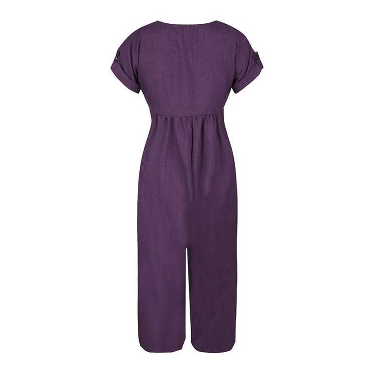 Very comfortable jumpsuit with larger sizes around the waist and hips. The cut is classic, complemented by a row of buttons that works perfectly as a V-neck.