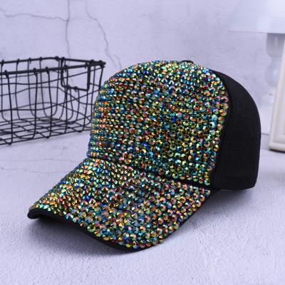 Stylish women's cap with rhinestones in various colours.