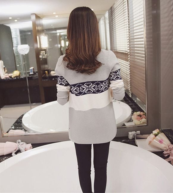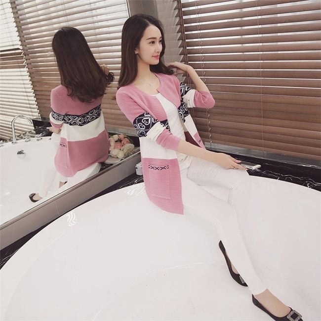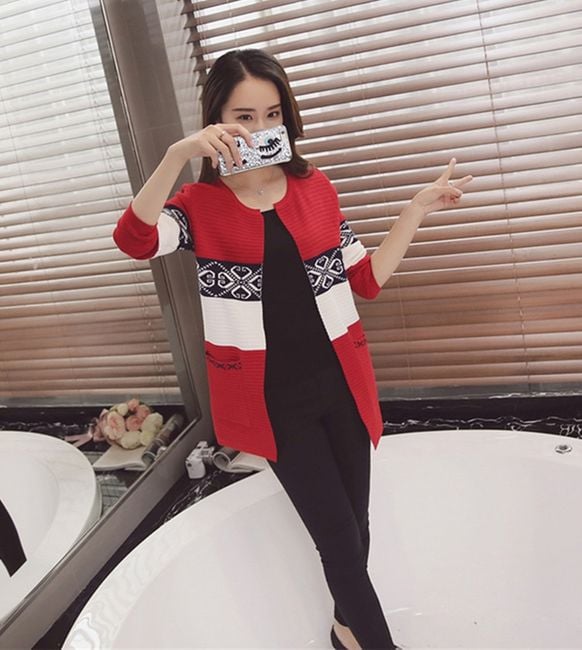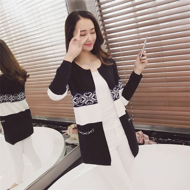 Mid-length women's cardigan with an interesting pattern and two pockets.