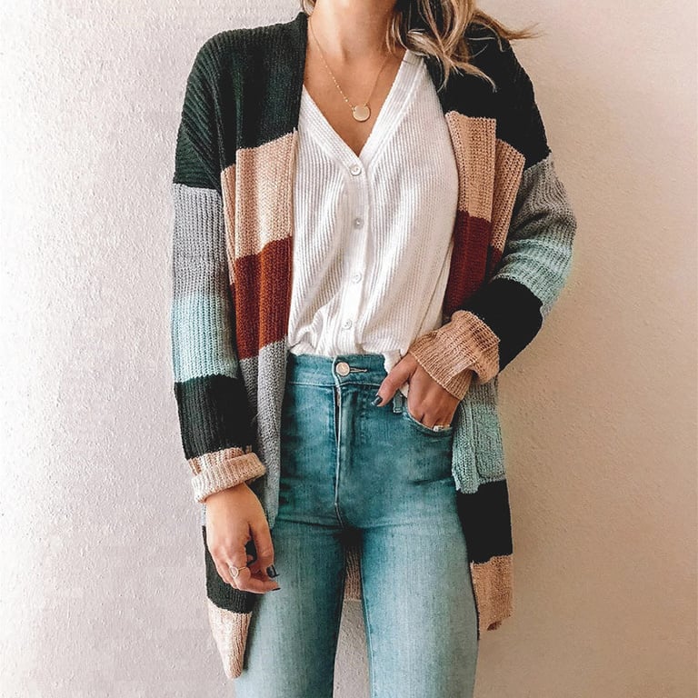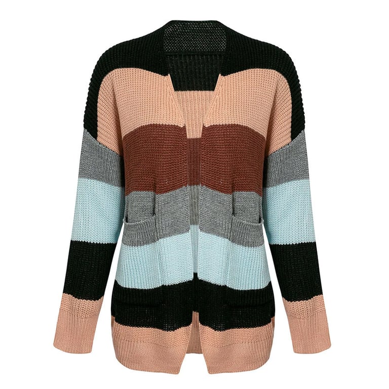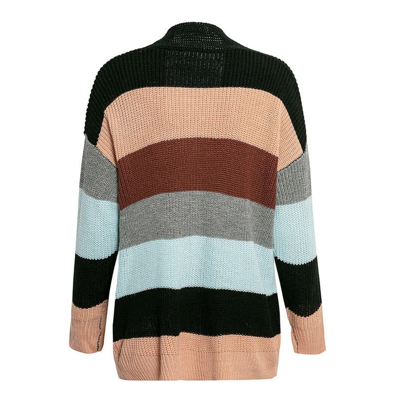 Women's cardigan without fastening. Loose fit with side pockets and a colourful striped pattern. One size fits all.