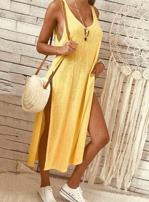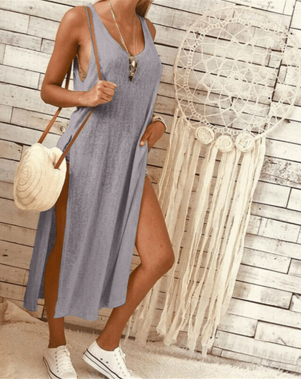 Women's Casual Long Tank Top/Dress with Slits Linda Peck.