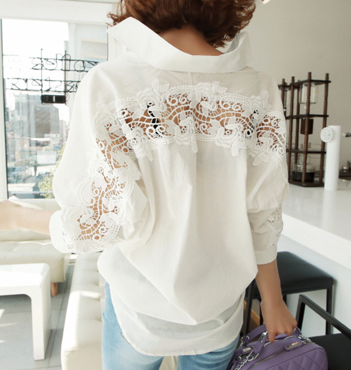 Stylish, fashionable and comfortable loose women's blouse with a collar.