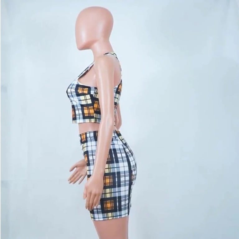 Women's Checked Crop Top and Skirt