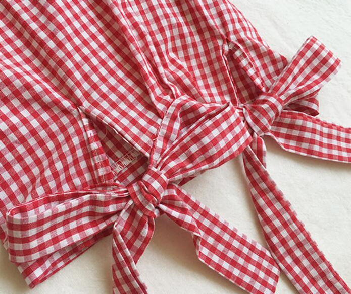 The shirt features a beautiful collar and 3/4 sleeves that tie in a bow.