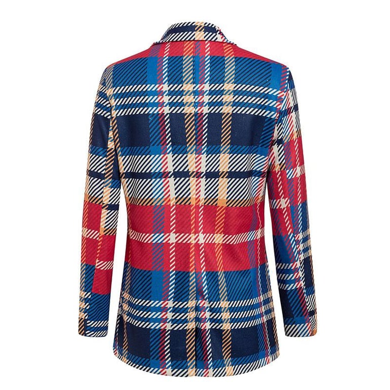Women's jacket with wide lapels. The jacket has a medium-length straight cut and button fastening. Colourful checked pattern.