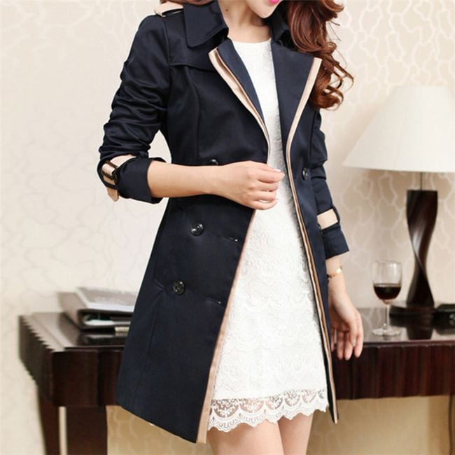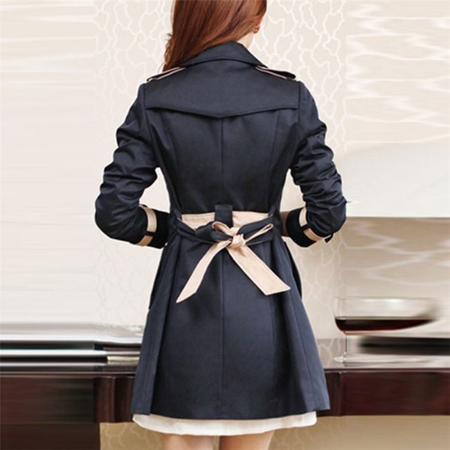 The women's elegant coat features buttons and lacing at the waist. Choose from 2 variants.