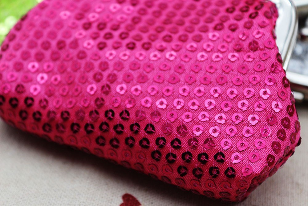 A beautiful coin purse with a print, adorned with sequins, will enchant you.