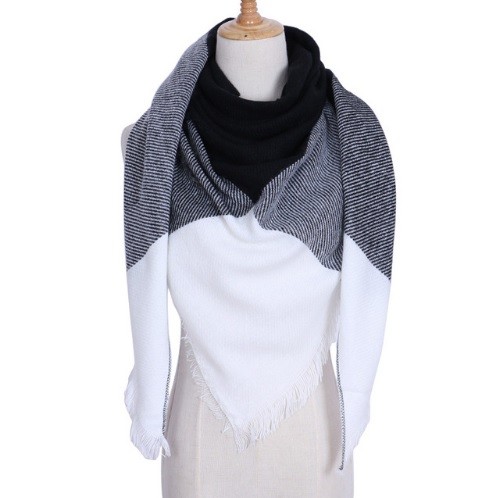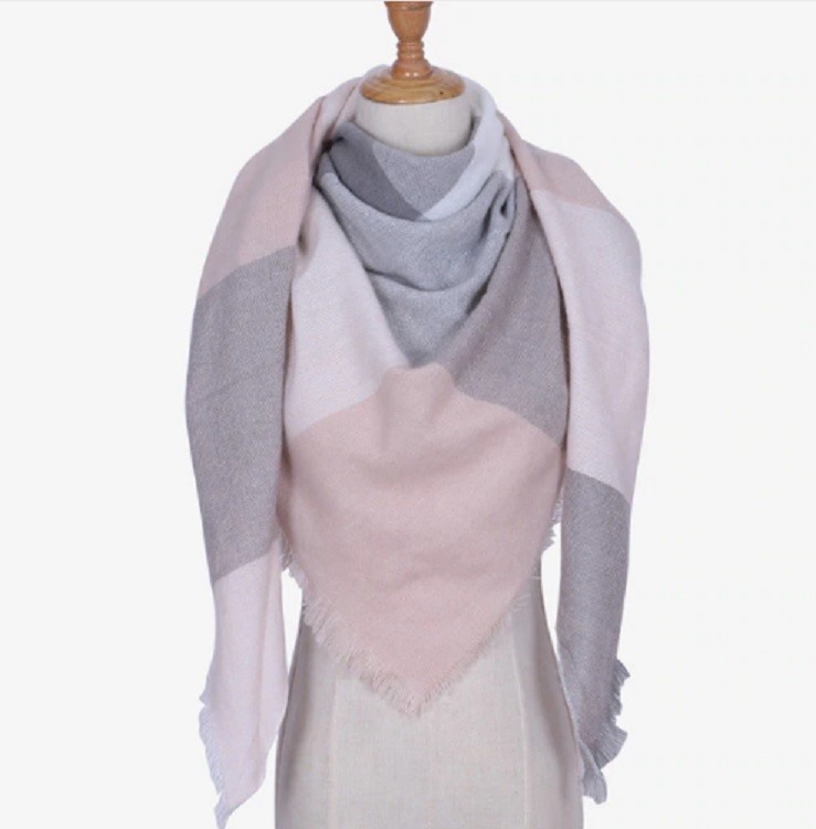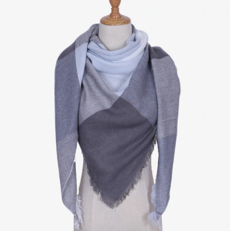The scarf is in the shape of a triangle.