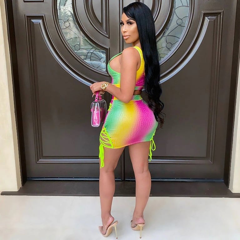 Women's Colourful Crop Top and Skirt
