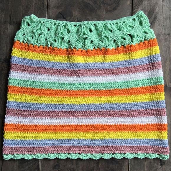 Colourful women's crocheted skirt suitable for the beach, by the pool, or for everyday wear. Available in several colour variations.