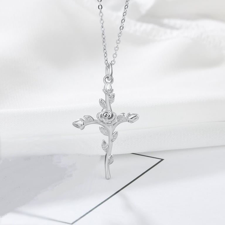 Women's Cross Necklace with Rose