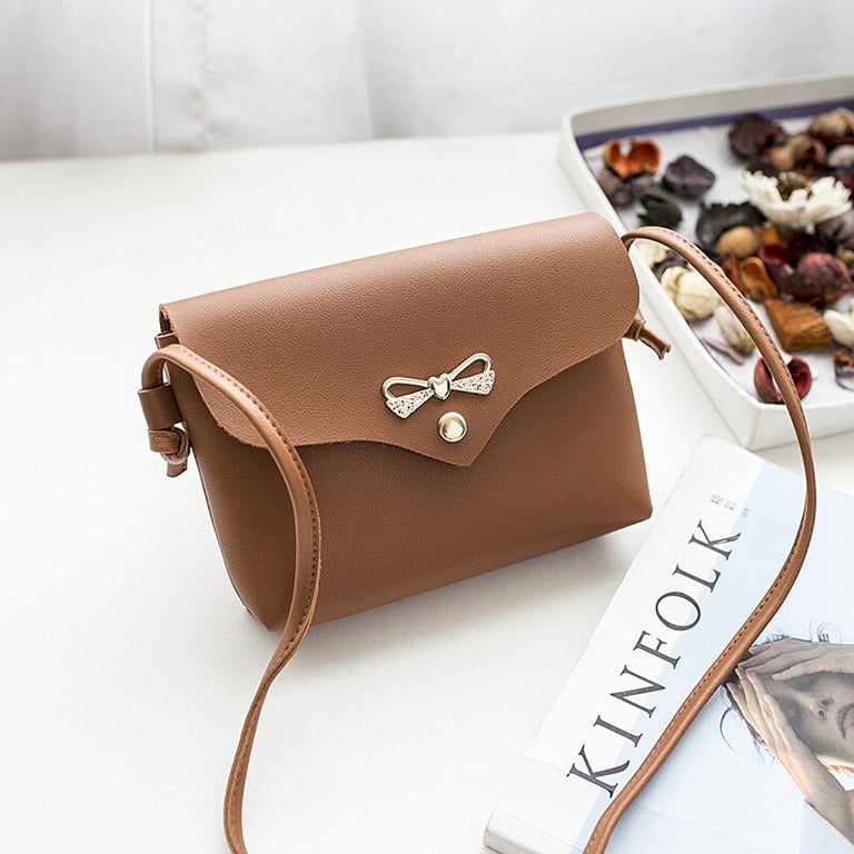 Small women's handbag with a long adjustable shoulder strap. Fastened with a snap. Details in gold hardware. Available in multiple colours.
