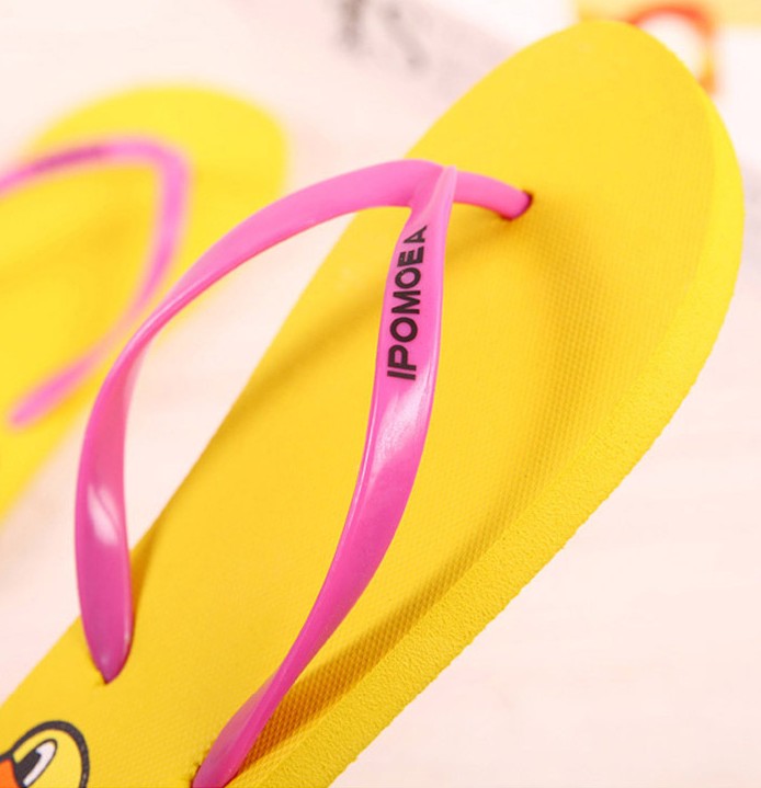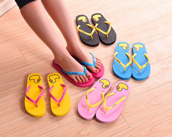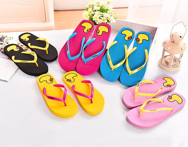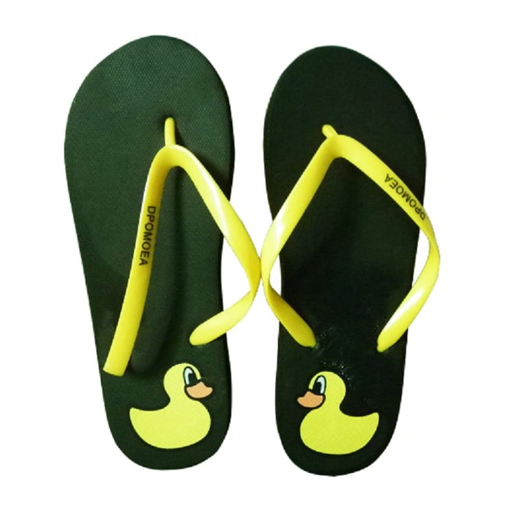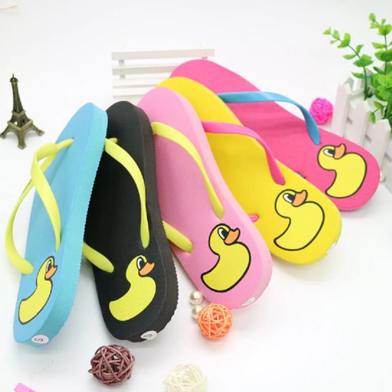 These adorable flip flops with a duck print are the perfect choice for the beach.