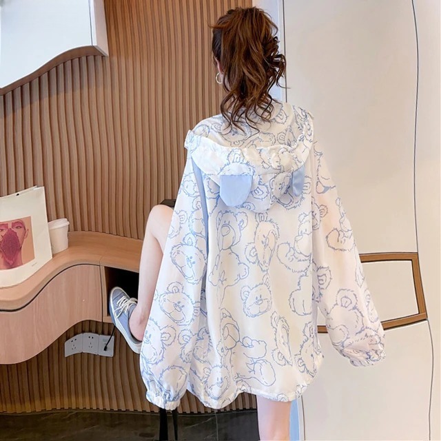 Ladies' cute zip-up hoodie with print