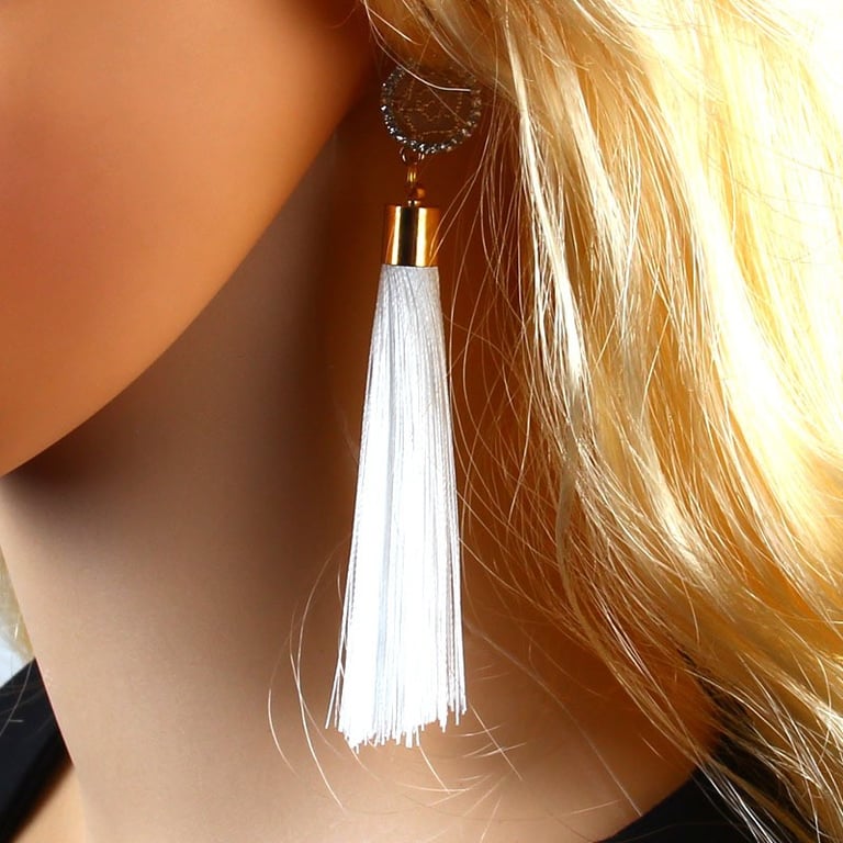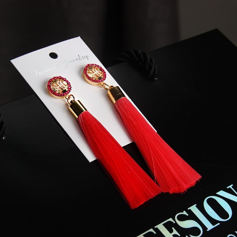 Elegant women's earrings with decorative tassels are suitable as an accessory for evening dresses or suits.