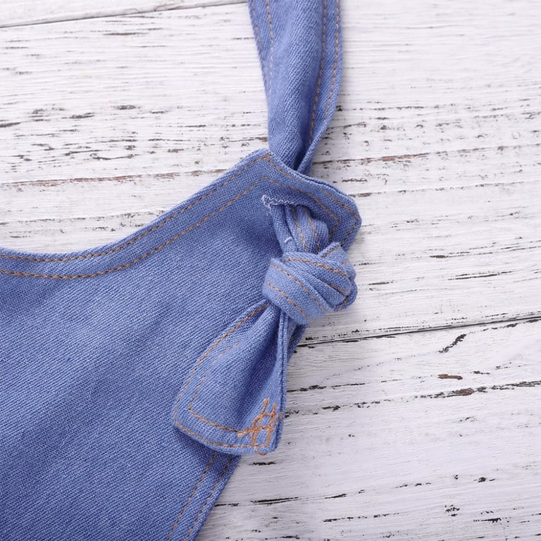 Women's strappy jumpsuit with knot detail. Fitted cut with short legs and button fastening. Denim look.