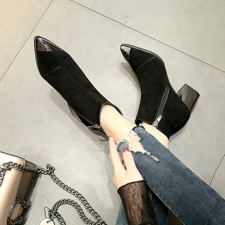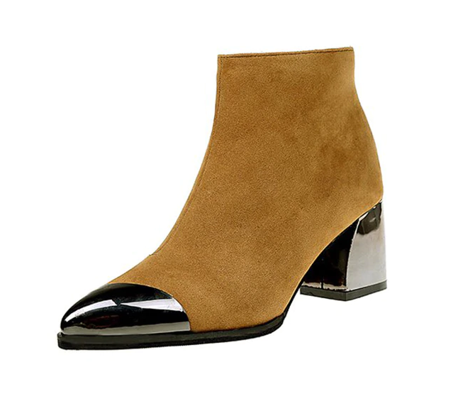 Step into these comfortable ankle boots. The shoes feature a silver heel and toe.