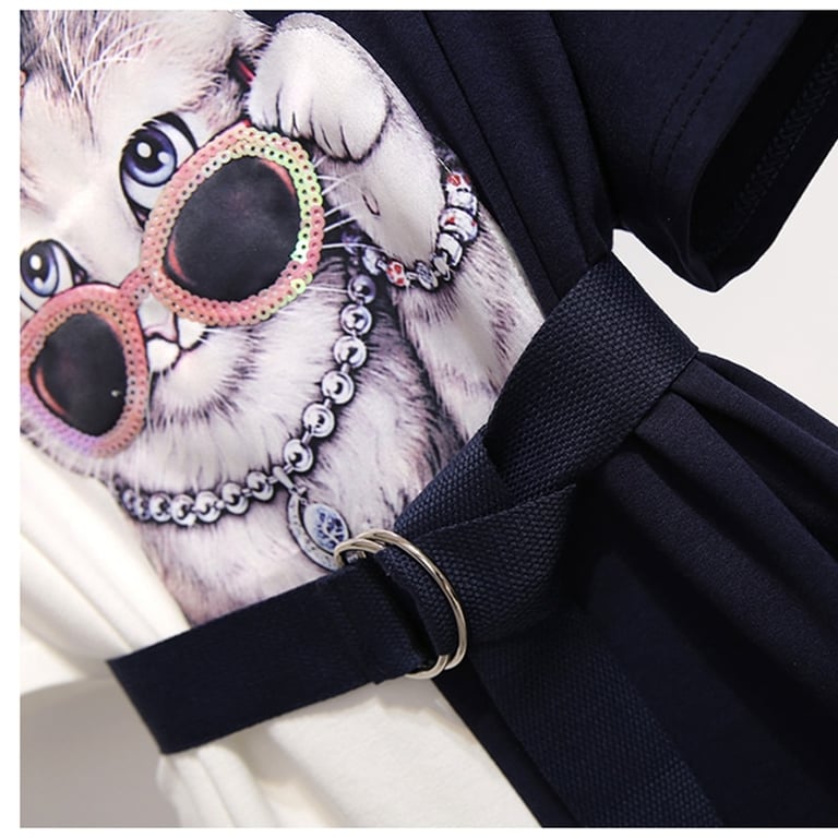 Women's designer summer dress with a cat motif.